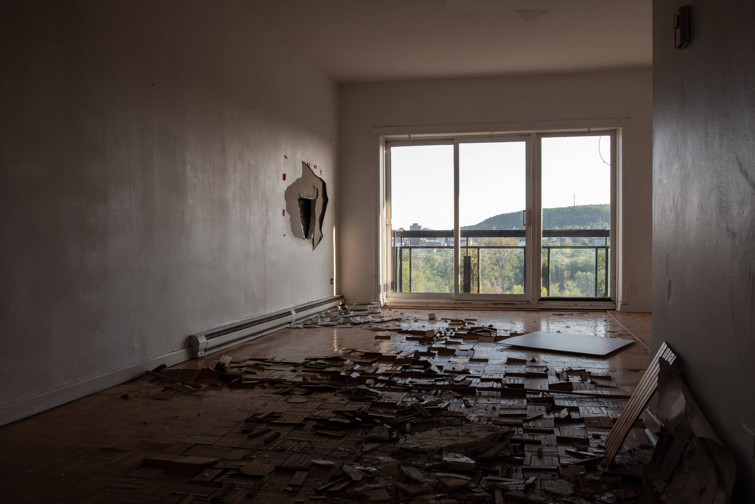 Étant bien au courant de la crise du logement à Montréal, la superbe vue sur le plateau Mont-Royal que m’offre ces dizaines appartements vides me crée un profond désarroi.