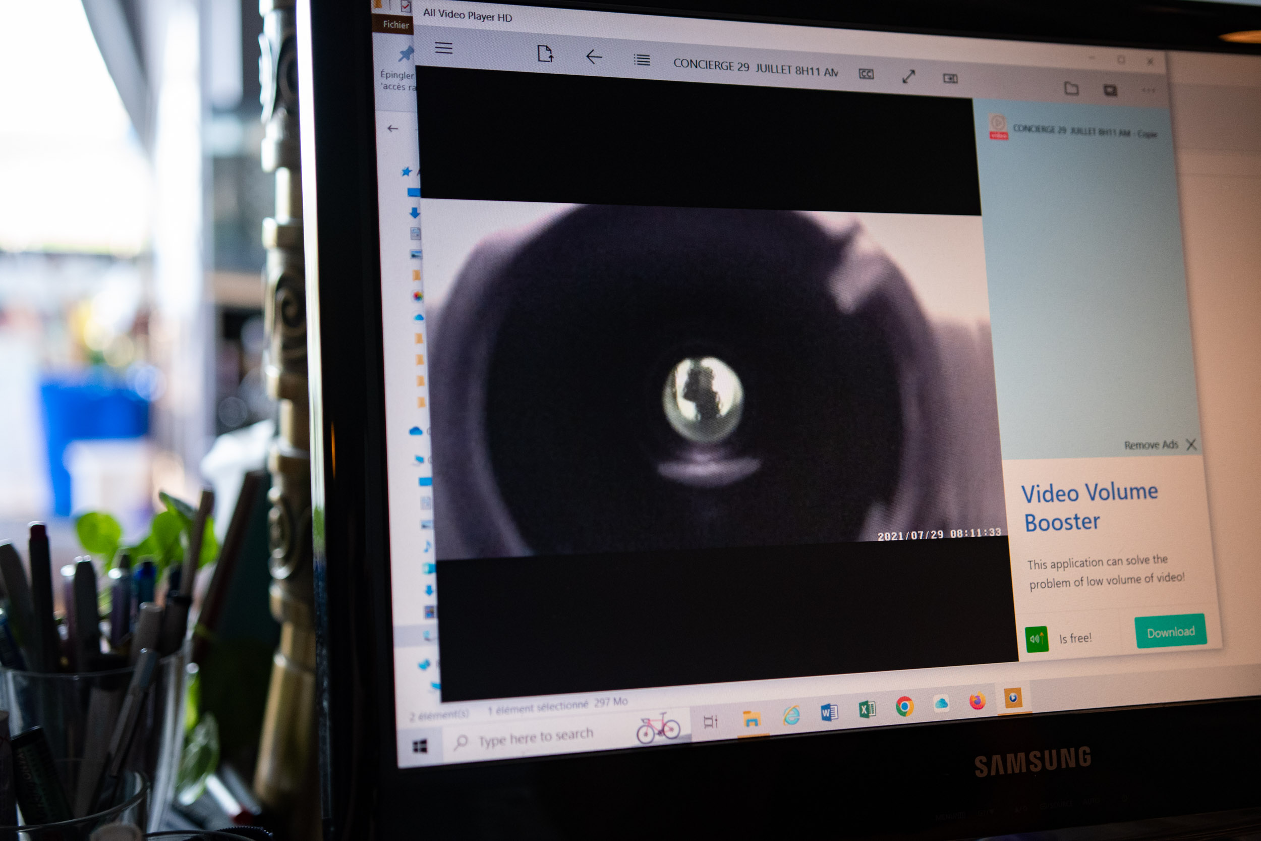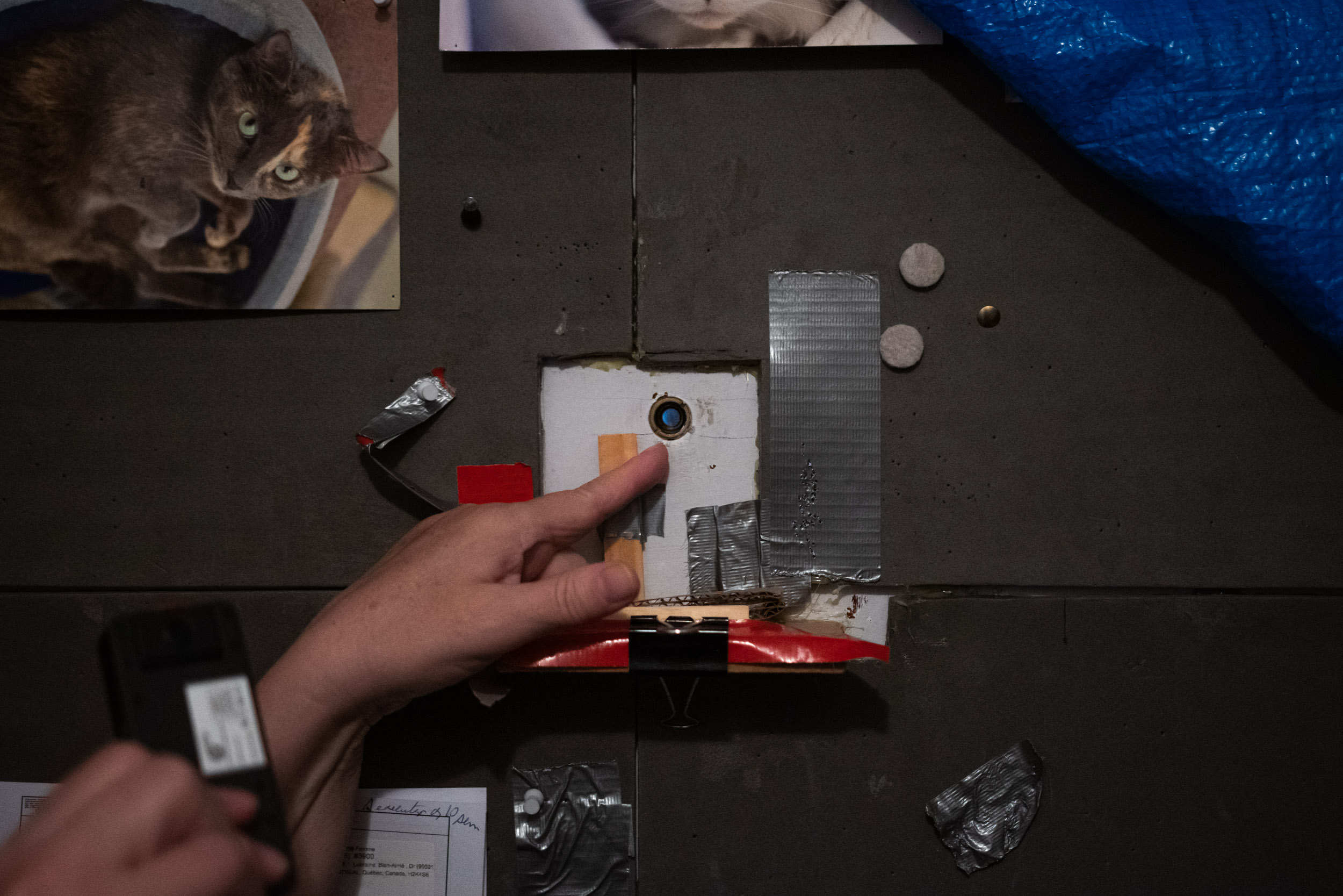 Ici le même employé asperge excessivement de liquide nettoyant l’oeil magique de sa porte toutefois sans en faire ainsi sur les autres portes de locataires.